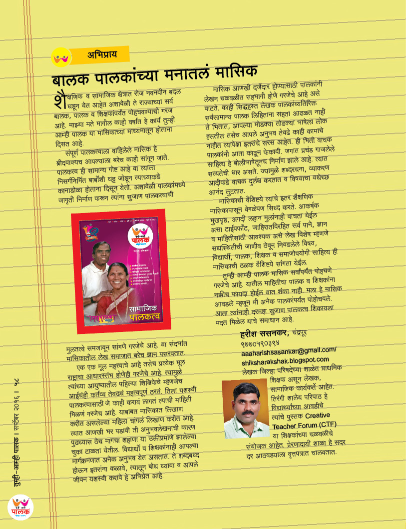 *सप्टेंबर 2016* चा अंक प्रकाशित झाला